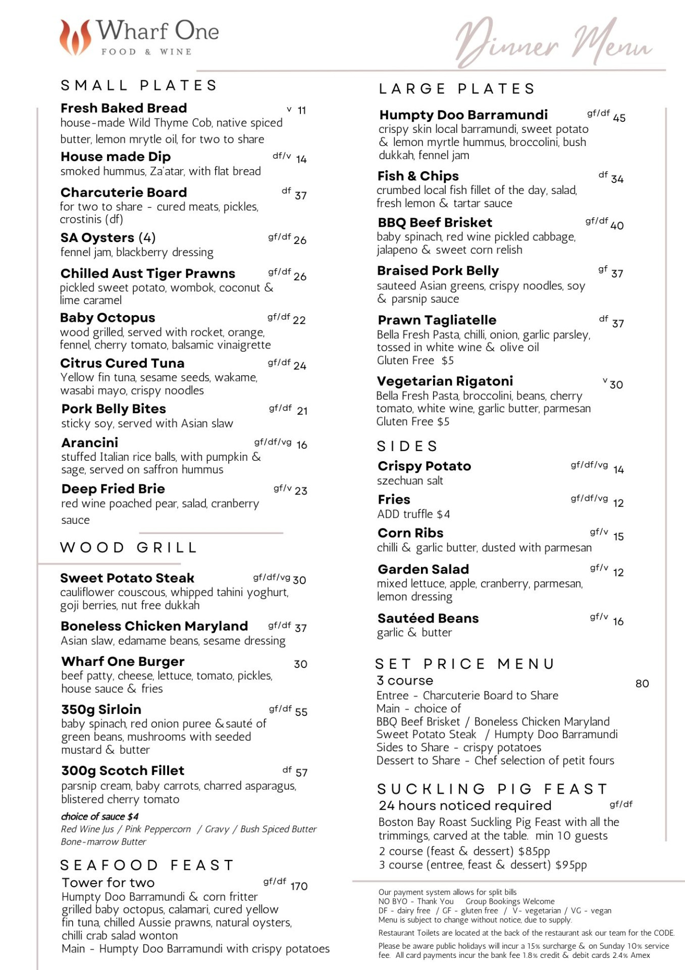 WHARF ONE FOOD & WINE - MENUS